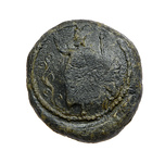 | Description: | A. standing Serapis, with modius. Right hand upraised, staff at right. No countermarks. Same as IL 1105, except for countermarks. B. plain with small countermark in center. | |
