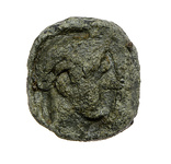 | Description: | A: head right, bearded (?), in oval incuse stamp. B: plain. | |