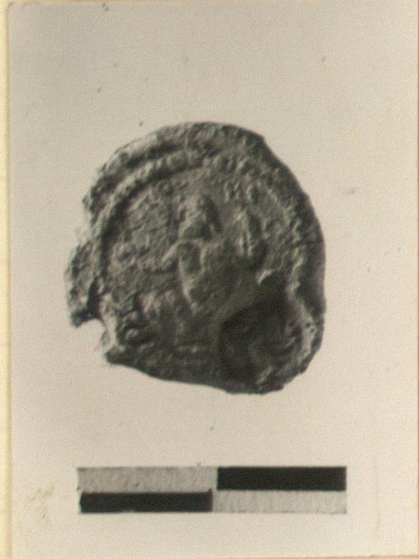 | Description: | Obverse: Serapis, standing, semi-draped, wearing modius, head left, right arm raised, staff in left hand. In field, right, crested serpent, left scrolls. Reverse: Triton with stance and attributes of Poseidon. Around figure, left to right, the inscription: ΠΟΣΕΙ. Countermark of stork and lizard at bottom. <graphic> | |
