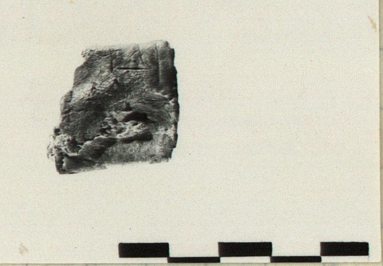 | Description: | Folded in ca. four layers. Cannot be opened. Part of left edge has flaked away. Inscription on one side. <graphic> | |