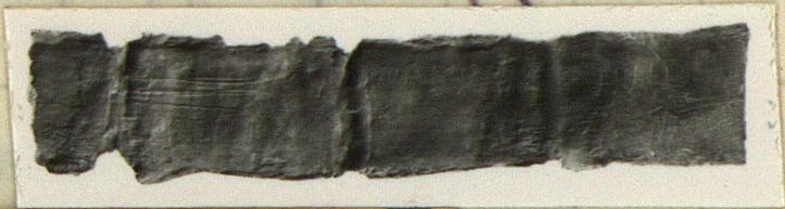 | Description: | Found folded in three and a half. Broken in three upon unfolding. Inscription on both sides. <graphic> | |