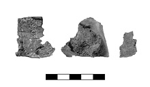 | Description: | Broken in three upon partial unfolding. Folded in ca. four layers and transfixed with an iron nail. Inside surfaces too corroded to preserve letters. | |