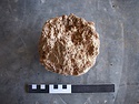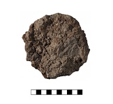 | Description: | Complete? Half sphere-shaped lump of iron slag, formed during iron smithing and removed during cleaning. Rounded side is relatively smooth. Three more slag hearth bottoms kept in lot BZ 1558. | |