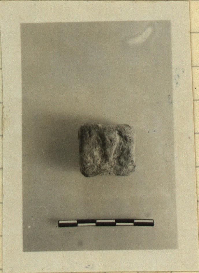| Description: | Small square block. In relief on upper surface, a dolphin (?), or a cornucopia (?). Cf. IL 147, very similar. | |