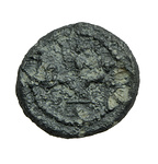 | Description: | Obverse: Helios in four horse chariot, two horses galloping left and two right. All within border of dots. Reverse: plain. Cf. IL 379. | |