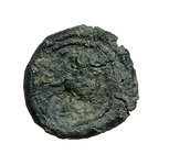 | Description: | Obverse: standing Serapis, semi-draped. Right arm raised. In field left scrolls, serpent right. All in border of dots. Reverse: Triton with attributes and stance of Poseidon. Seated left, trident in left hand, dolphin in outstretched right hand. Countermark below. All in border of dots. | |