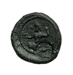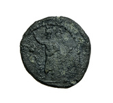 | Description: | Obverse: standing semi-draped Serapis left, with staff in left hand and right hand upraised. In field right crested serpent, left scrolls. All within border of dots. Reverse: Triton with attributes and stance of Poseidon. Seated left, semi-nude, holding a dolphin in right outstretched hand , trident in left. Countermark of stork and lizard. Inscription: ΠΟCΕΙ (ΔΩΝ). All within border of dots. <graphic> | |