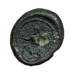 Description:   Obverse: standing, semi-draped Serapis, right arm raised, spear in left hand.