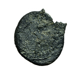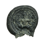 Description:   Obverse: semi-draped, standing Serapis, left; with right arm raised, spear in left. Serpent (?) at right.