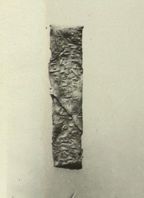 | Description: | The sheet is folded into a thin rectangular packet. Traces of cement. | |
