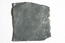 | Description: | Small piece of thin sheet zinc, approximately rectangular. One corner preserves original edge. Identified as zinc by M. Farnsworth. | |
