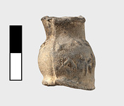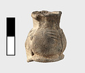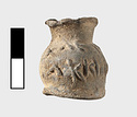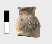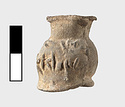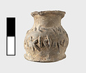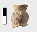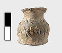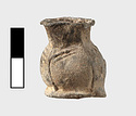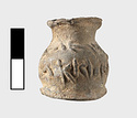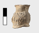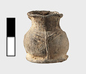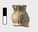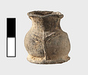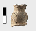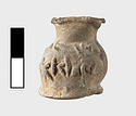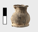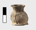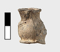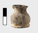 Small flat-bottomed pot without handle. Made from two halves stuck together.