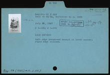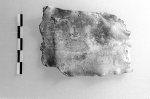 | Description: | Left edge preserved except at lower corner; right edge chipped. | |