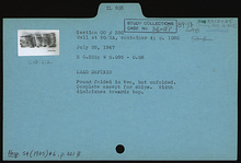 | Description: | Found folded in two, but unfolded. Complete except for chips. Width diminishes towards top. | |
