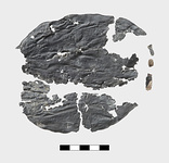 | Description: | Irregularly rolled up; One end broken, the other chipped. Much damaged and crumpled. | |