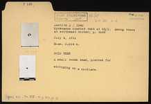 | Description: | Small round bead. Pierced for stringing on a necklace. | |