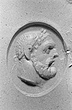It shows a bearded man right, wearing a wreath, the ends of the fillet tied behind.