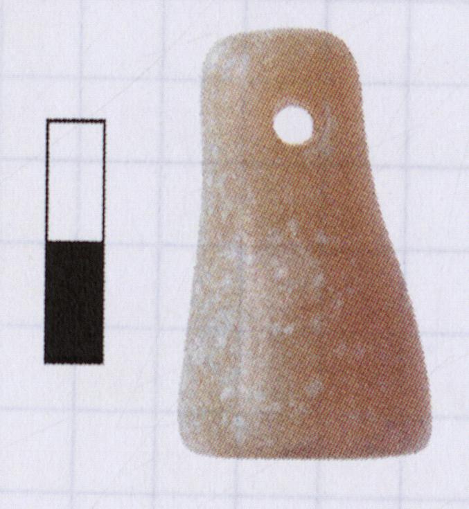 | Description: | Complete; surface abraded. Truncated conical shape, flat bottom, rounded top. Single horizontal piercing at top. Opaque greenish white stone. Mycenaean LHIIIA. | |