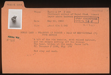 | Description: | A bit of the rim remains, with raised spirals, and two ridges setting off the discus. The head, broken at the neck, faces left. Head of Men-Mithras (?). Red clay and wash. Type XXVIII of Corinth collection. Cf. Corinth IV, ii, no. 1188, p. 255, fig. 178. | |