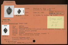 | References: | Publication: Agora VII Publication: Hesperia 2 (1933) Publication Page: Agora 7, s. 225, p. 209 Publication Page: Agora 7, s. 229, p. 213 Image: 2012.81.0512 (95-18-26) Image: 2012.81.0516 (95-18-30) Deposit: H-I 7:1 Notebook: Α-1 Notebook Page: Α-1-82 (pp. 149-150) Card: L 101 |