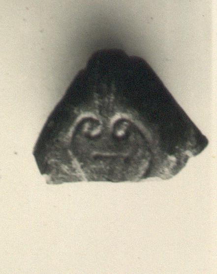 | Description: | The start of the handle, double grooved, preserved. On the reverse a heart-shaped groove; within the letter "T". Type XXVIII of Corinth collection. Cf. Corinth IV, ii, no. 1398, pl. XXXIII. | |