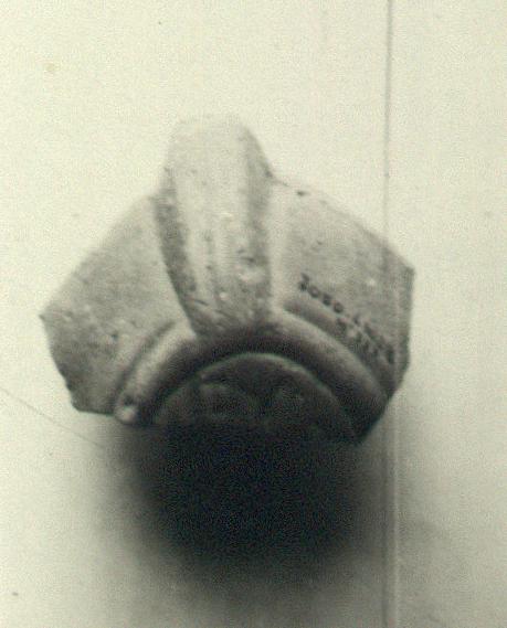 | Description: | Fragment of back part. Wavy lines on the rim; pierced handle, double grooved above and below; in a single circular groove "EY", perhaps "EYKAΡΠΟΥ". Unglazed. Pinkish-buff clay. Type XXVIII of Corinth collection. Cf. Corinth IV, ii, no. 979, pl. XXXII. | |