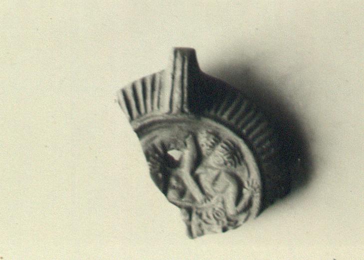 Description:   Rays on the rim; handle solid, thin, double grooved above, single below.