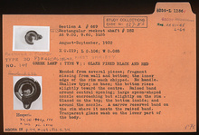 | References: | Publication: Agora IV Publication: Hesperia 15 (1946) Publication Page: Agora 4, s. 54, p. 44 Publication Page: Agora 4, s. 233, p. 223 Drawing: PD 465 (DA 11843) Image: 2012.51.1110 (XXVI-45) Deposit: G 6:3 Deposit: G 6:3.1 Notebook: Α-8 Notebook Page: Α-8-56 (pp. 1461-1462) Card: L 1186 |