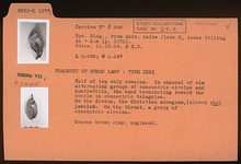 | Description: | Half of top only remains. In channel of rim alternating groups of concentric circles and quatrefoils, the band terminating toward the nozzle in concentric triangles. On the discus, the Christian monogram, (closed "rho") jewelled. On the throat, a group of concentric circles. Unglazed. Coarse brown clay. Type XXXI of Corinth collection. | |
