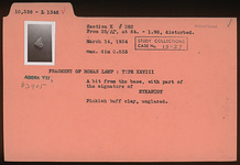 | Description: | A bit from the base, with part of the signature of "EYKAΡΠΟΥ". Unglazed. Pinkish-buff clay. Type XXVIII of Corinth collection. | |