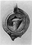 | Description: | End of nozzle and part of body broken away. On the discus, a boukranion. The rim plain. The handle grooved, semi-pierced, herringbone in front and back. U-shaped nozzle set off by two transverse grooves. On the base concentric grooves. Light red clay, unglazed. Type XXVIII of Corinth collection. Cf. Corinth IV, ii, pp. 102-114, nos. 786-1412, pls. XIII-XIX. | |