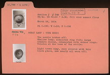 | Description: | The nozzle broken off. Shallow body; simulated ring foot; large concave discus, ornamented with raised rings. Volutes at the base of the nozzle. Light brown clay, once covered with thin black glaze, now nearly all worn off. Type XXIII of Corinth collection. | |
