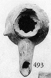 | Description: | The handle and the middle of the top are missing and the raised edge around the top. Ring base; the upper and lower parts of the body meet at an acute angle. Long pointed nozzle; vertical strap handle. Unpierced lug on one side. There was a high raised edge around the top. The top is pierced with many small holes, like a sieve. Much flaked black glaze. Wheel made D. Pinkish-buff clay. Type XII of Corinth collection, type 37A of Agora collection. | |