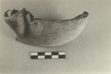 | Description: | Part of the nozzle of an extremely large lamp, with a volute at the base. The left side and top are broken away. Trace of burning at the end inside. Pink clay; traces of red wash. Type XXI of Corinth collection. Cf. Corinth IV, ii, pp. 73-76, nos. 383-417, pls. VII-IX. | |