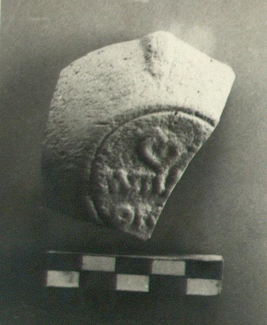 | Description: | In raised letters on reverse within a circular groove, the signature; a heart-shaped motif above. Light buff clay, lighter slip. Type XXVII (?) of Corinth collection. <graphic> | |