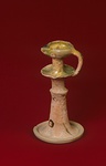 | Description: | Lamp on high stand. Piece missing from side of lamp and from edge of base. Vertical handle. Green pale glaze on lamp, handle, and drip: spots on the stand; light slip. Pinkish-buff clay. | |