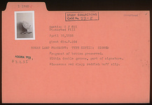 | Description: | Fragment of bottom preserved. Within double groove, part of signature. Reddish-buff slip. Micaceous red clay. Type XXVIII of Corinth collection. | |
