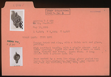 | Description: | High vertical handle, with a single groove and a large opening. Plain rim save for a knob on each side, towards the front. Plain disc. A long nozzle with a groove down it. Base marked by a very low ring; glaze peeled too badly to tell certainly whether it was signed or not. Coarse brick red clay, with a thick matte red glaze peeling. Type XXVI of Corinth collection. Cf. Corinth IV, ii, pls. 30, 526, 527. | |