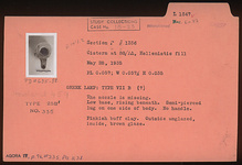 | Description: | The nozzle is missing. Low base, rising beneath. Semi-pierced lug on one side of body. No handle. Outside unglazed, inside, brown glaze. Pinkish-buff clay. Type VIIB (?) of Corinth collection, type 25B' of Agora collection. | |