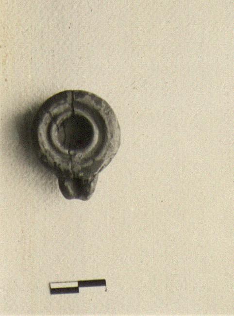 Sides curving outwrad toward junction with rim. Irregular nozzle, spoon-shaped; rather short, with proportionately large wick hole just escaping rim.