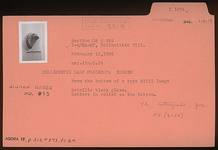 | Description: | From the bottom of a lamp. Letters in relief on the bottom. Metallic black glaze. Type XVIII (?) of Corinth collection, Signed Bases type of Agora collection. <graphic> | |