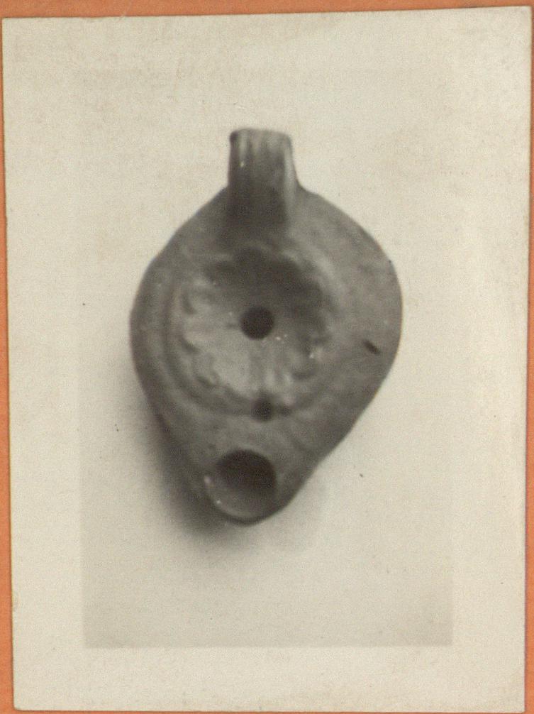 | Description: | On rim, herringbone pattern. On discus, rosette, with central filling hole. Handle solid, triple grooved. On base, double concentric grooves. Red glaze. Red clay. Type XXVIII of Corinth collection. ADDENDA For nozzle, cf. Corinth IV, ii, p. 105, fig. 49, p. 1. | |