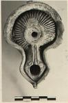 | Description: | Handle missing. Similar to L 2200, even to the lugs, but the top surrounded by a high edge. Two air holes at base of nozzle. Pale yellow-buff slip, very thin brownish glaze over top, upper part of outside, and smears below. Much worn. Type XVIII of Corinth collection, type 52B of Agora collection. | |