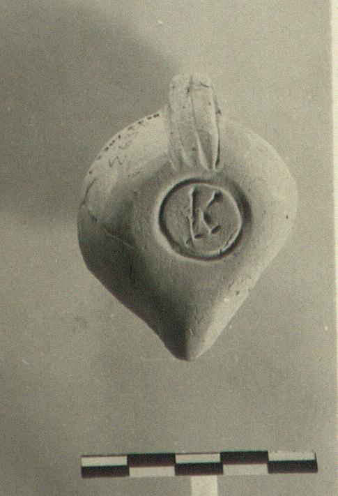On the reverse, a single circular groove, small, enclosing the signature "K".