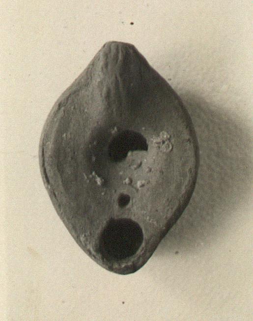 | Description: | Handle double grooved. Other elements all plain; body of lamp nearly straight sided; central filling hole, slightly broken. Unglazed. Light red clay. Type XXVIII of Corinth collection. | |