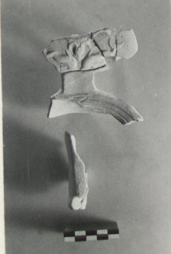 | Description: | Handle, pierced of a large lamp, with part of shield and rim. A piece from side near nozzle seems to belong. On the shield two dolphins with part of a floral ornament above. Traces of brownish slip or glaze. Pale greenish-buff clay (Corithian?). Type XXI of Corinth collection. | |