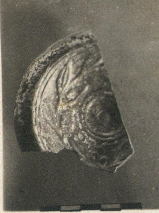 | Description: | From the discus of a lamp, glazed red over a white slip. Wreath of leaves in relief around a small filling hole. Type XXV of Corinth collection. | |