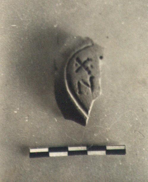 | Description: | Fragment of reverse preserved. Almond-shaped reverse with groove enclosing signature. Unglazed. Buff clay. Type XXVIII of Corinth collection. <graphic> | |
