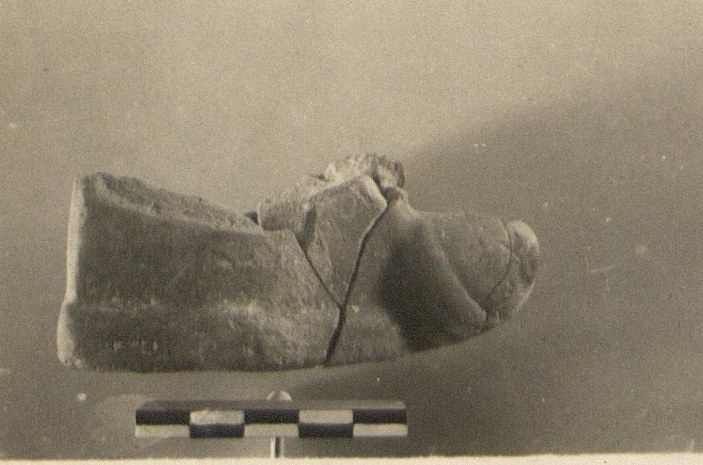| Description: | From a figurine lamp. foot with phallus nozzle. Poor red glaze. | |