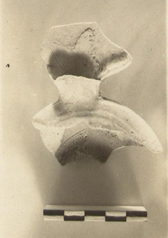 | Description: | Back and most of handle preserved. On top of handle, large moulded leaf-like shield. Poor brownish glaze was used for sticking the parts together, as well as on the surfaces. Buff clay. Type XXI of Corinth collection. | |